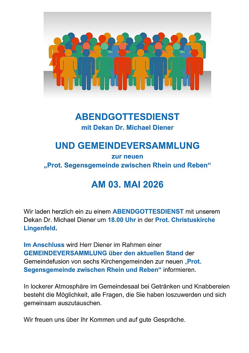 Zunächst einmal wird es aber darum gehen, Sie, liebe Gemeinde, kennenzulernen und genau hinzuschauen und hinzuhören, was es schon gibt und was gewünscht und gebraucht wird, um als lebendige Gemeinschaft voll Freude und Zuversicht gemeinsam diese Gemeinde weiterzuentwickeln.